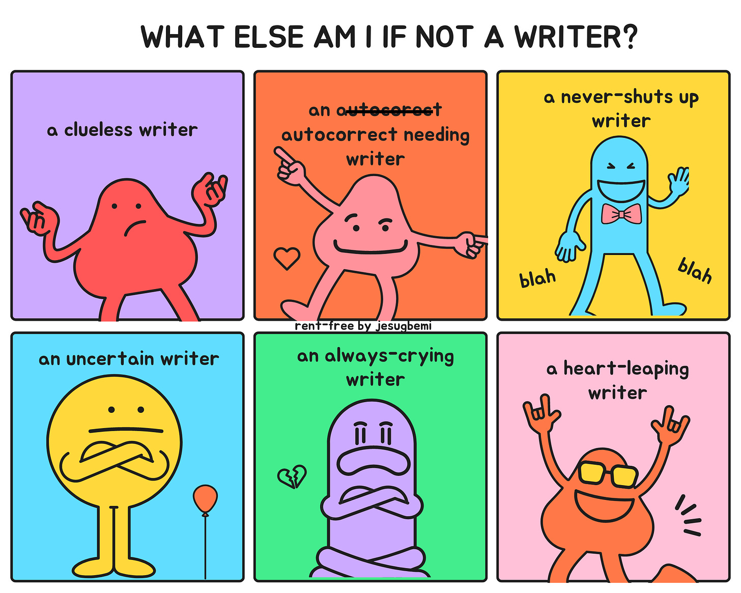 I am a writing writer, an uncertain writer, an autocorrect-needing writer, a clueless writer, a always-cry-when-takes-up-writing-job writer, a never-shuts-up writer, a heart-leaping writer.